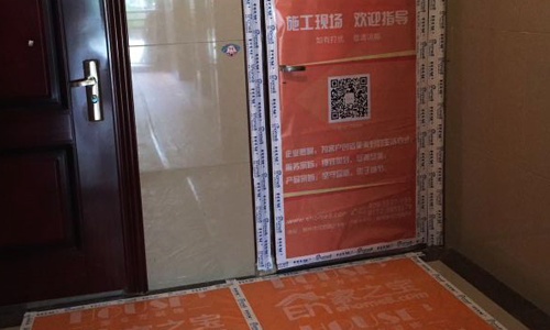 入戶門(單門、子母門)里、外面應(yīng)用公司專用門貼保護(hù),門框用公司專用膠帶粘貼保護(hù).