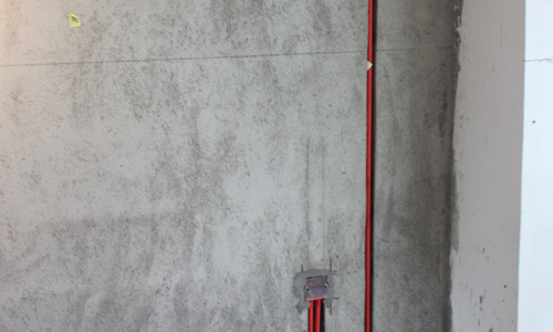 墻頂面基層膩?zhàn)討?yīng)平整,最后一遍打磨應(yīng)用燈光照射,光源照射方向一致,燈光照射時(shí)不得出現(xiàn)陰影