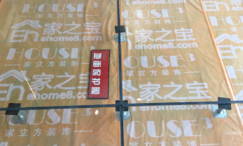 地面鋪貼完畢應(yīng)清理干凈,用公司專用保護(hù)膜保護(hù)