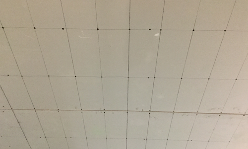 吊頂轉(zhuǎn)角處的石膏板必須裁∟型固定,中間丁字接口必須裁T型固定