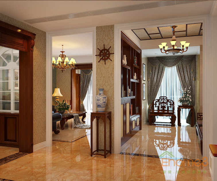 彩虹城三房一廳113㎡茶幾休息區(qū)田園風格裝修效果圖