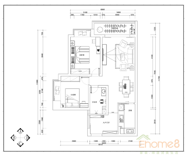 陽光100城市廣場67㎡兩房一廳法式風(fēng)格裝修效果圖
