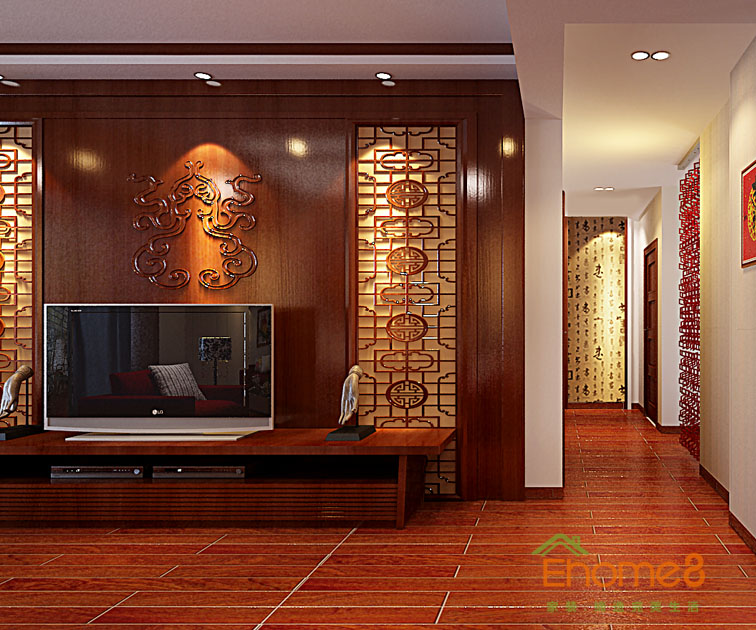 和諧家園98㎡三房一廳中式田園風(fēng)格裝修效果圖