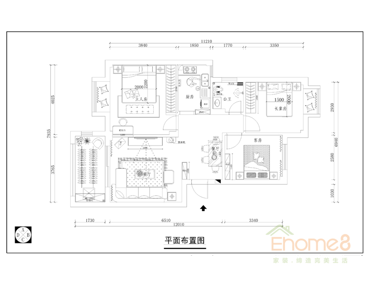 紫荊花園99㎡三房一廳法式風格裝修效果圖