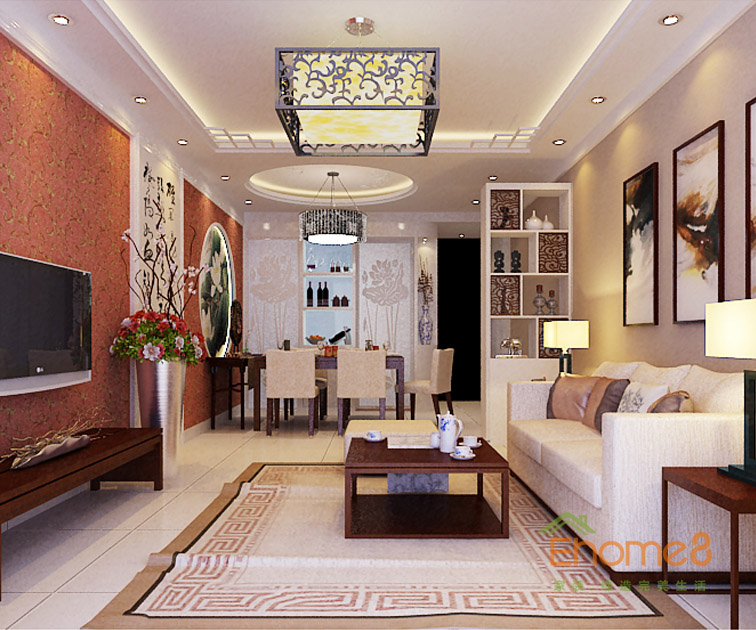 在水一方78㎡兩房一廳中式中國(guó)風(fēng)裝修效果圖