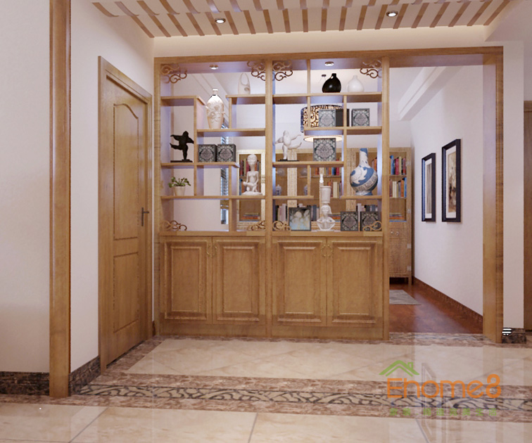 在水一方98㎡三房一廳中式原木風(fēng)格裝修效果圖