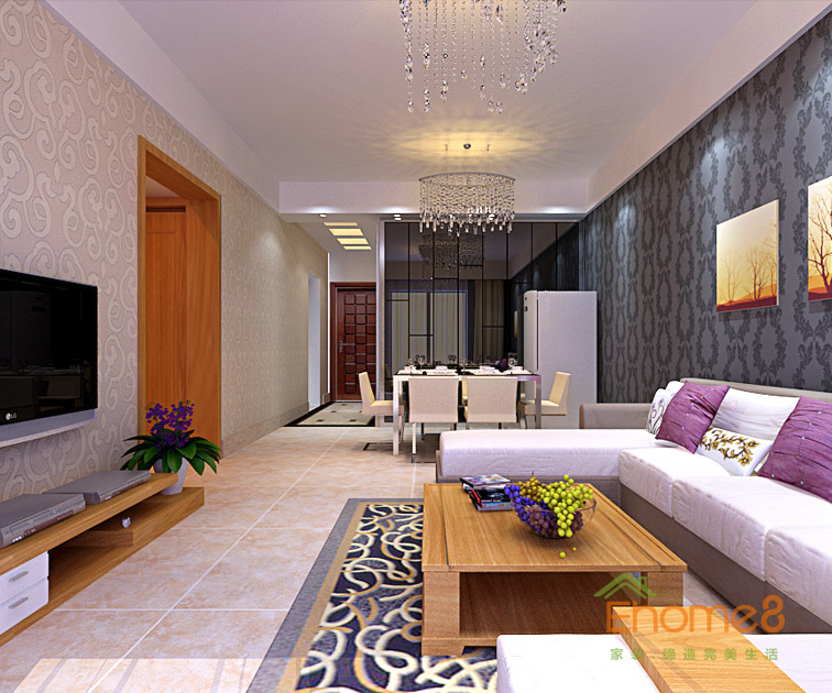 陽光100 75㎡兩房一廳現(xiàn)代簡約風格客廳裝修效果圖