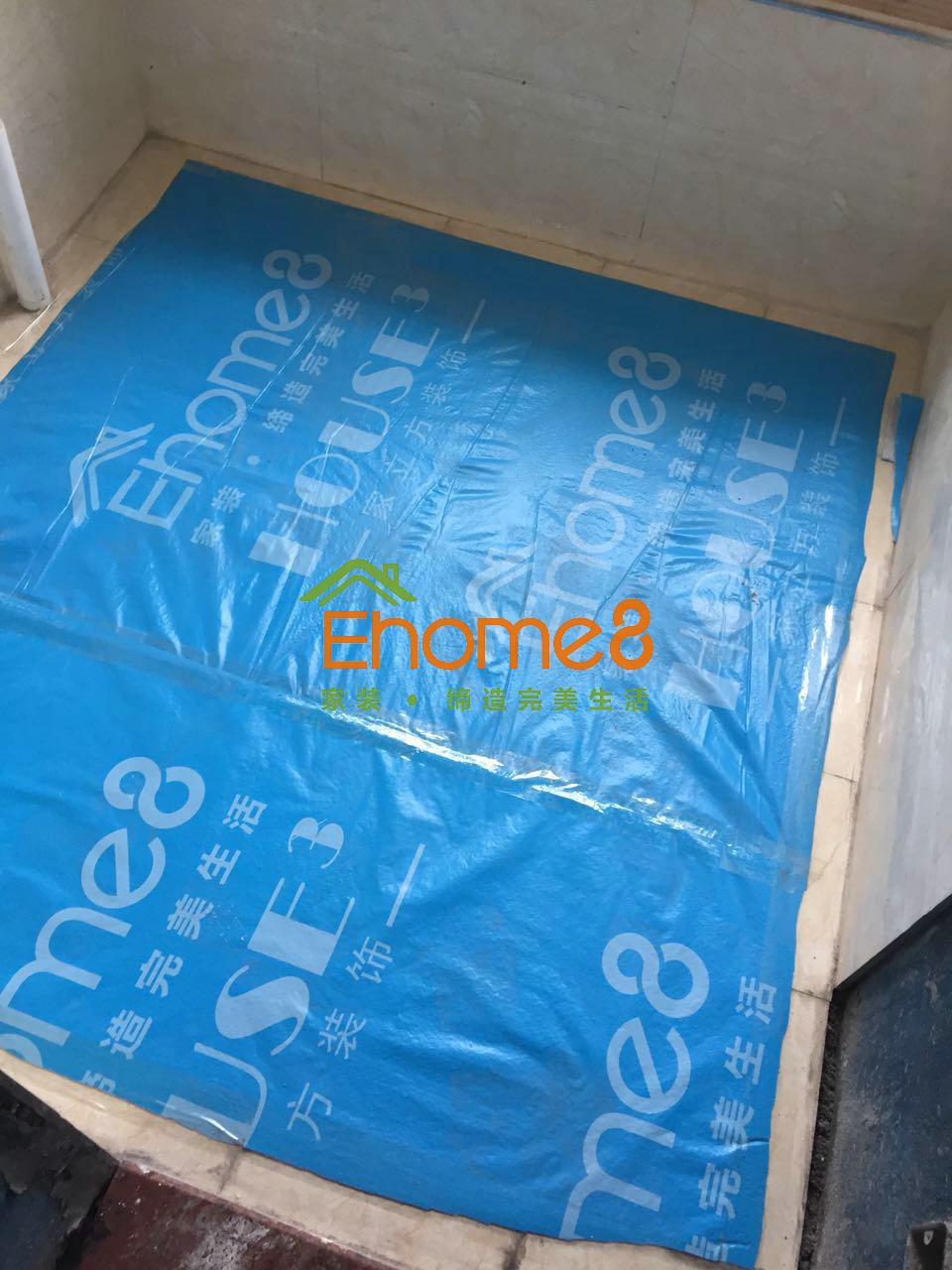 衛(wèi)生間門安裝及衛(wèi)生間有色防水的涂刷及閉水試驗(yàn)、鋪磚等