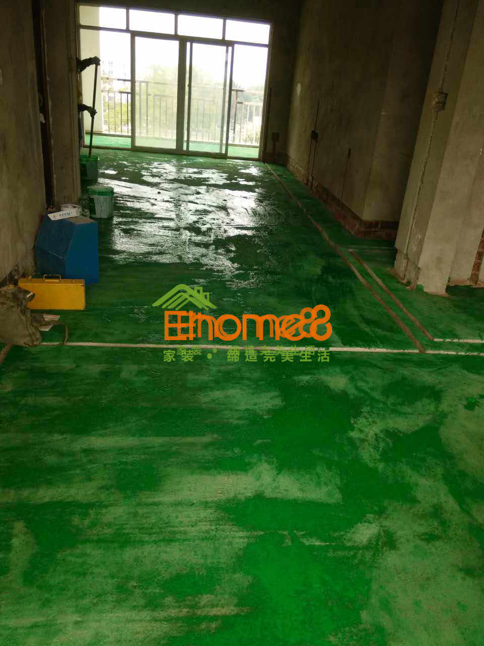 地面綠環(huán)地固的涂刷及水電材料的配送