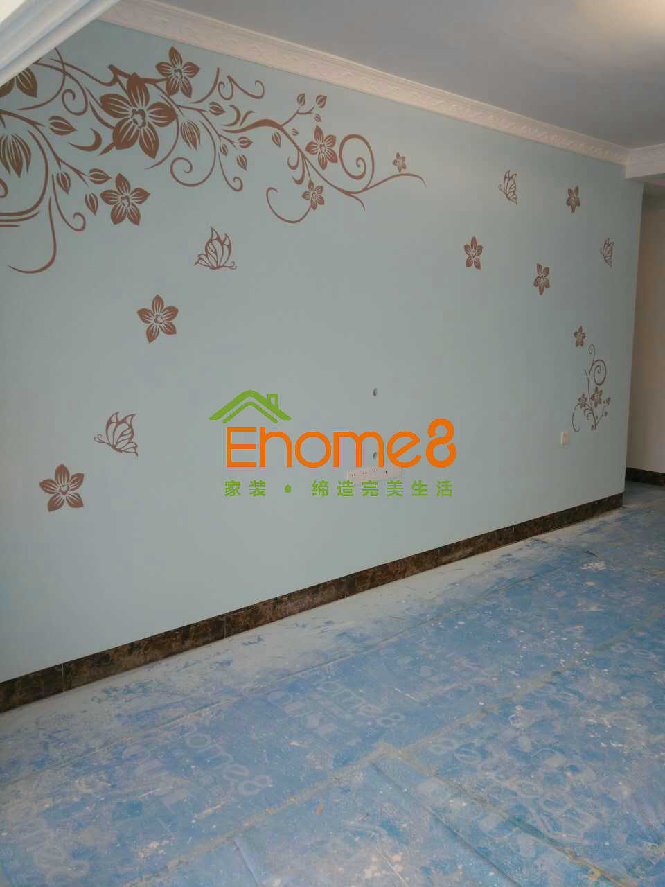 批刮膩子,平整墻面,涂刷乳膠漆完成