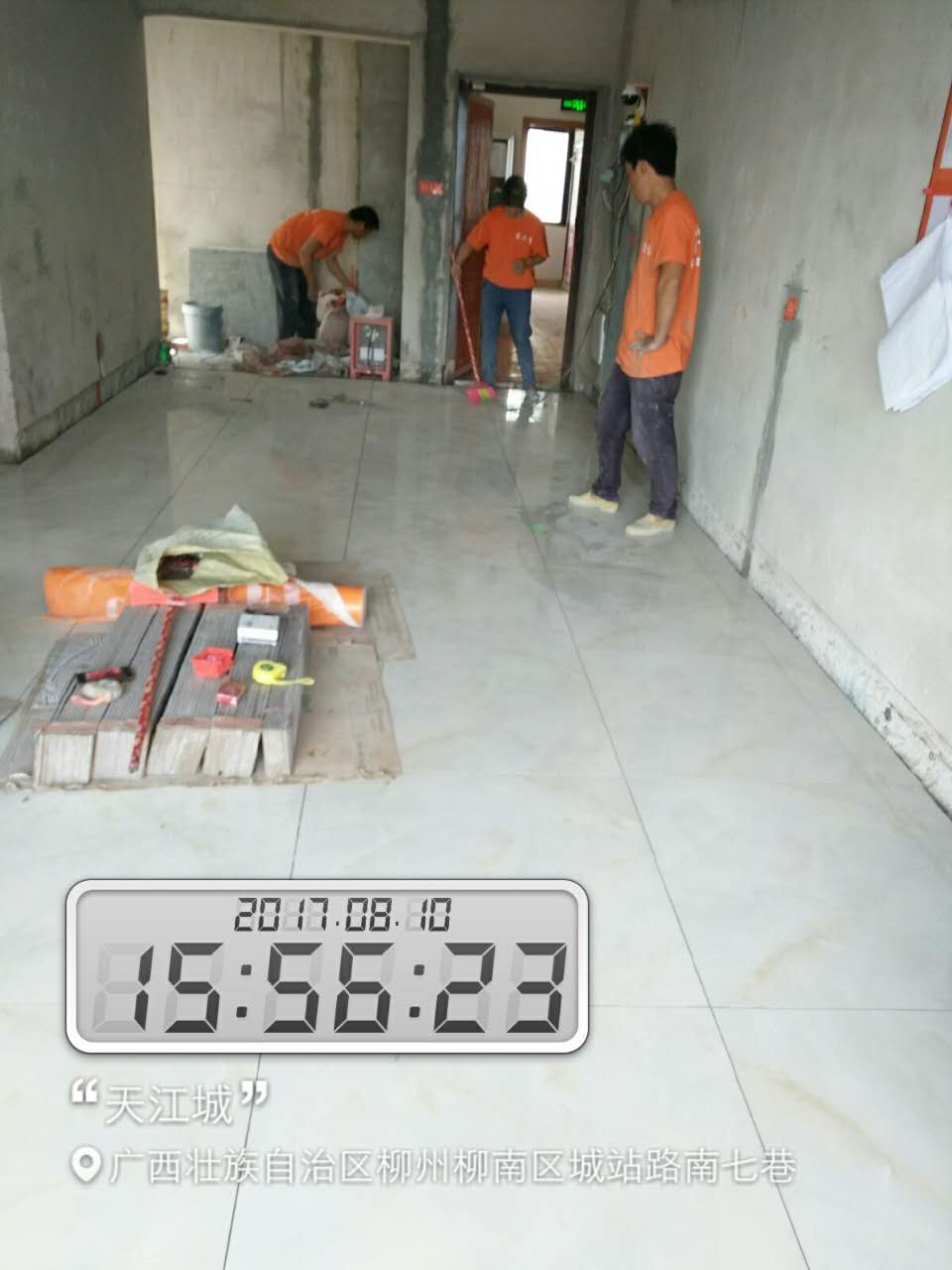 瓦工施工,平整對(duì)縫,鋪貼完畢即刻進(jìn)行成品保護(hù),鋪好地膜。