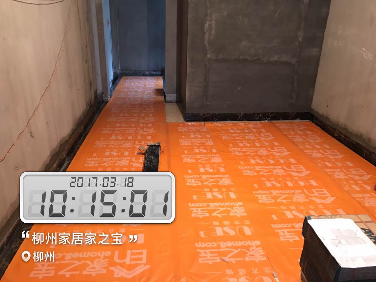 地磚鋪貼完畢,進(jìn)行成品保護(hù)。鋪木地板的區(qū)域,找平完畢