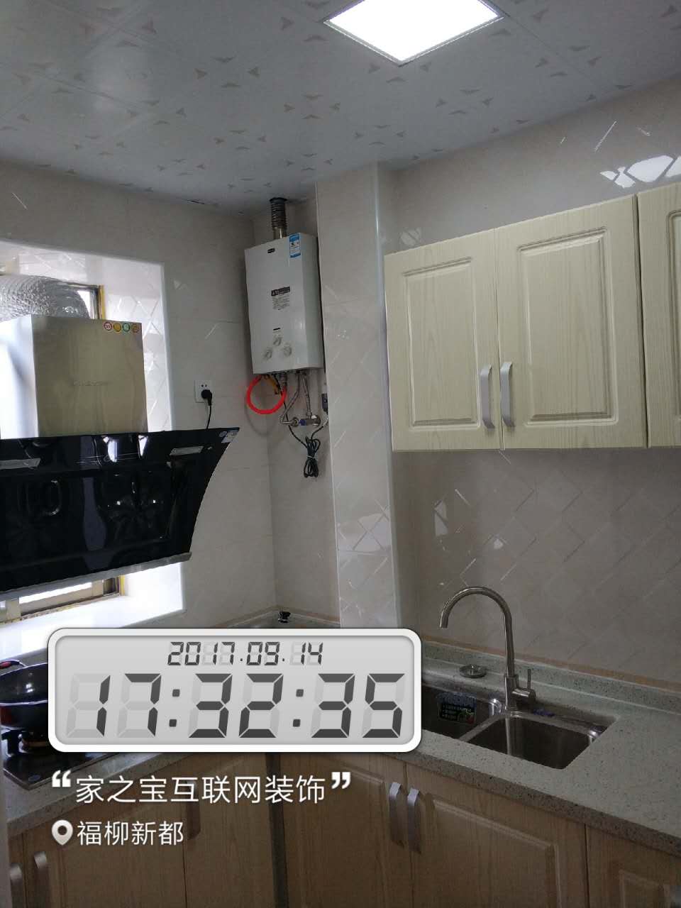 墻磚鋪貼,使用水平儀投射水平線,陽角處采用磨邊45°碰角工藝。