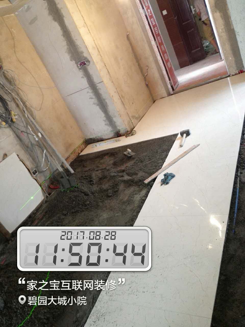 瓦工施工,平整對縫,鋪貼完畢即刻進行成品保護,鋪好地膜。